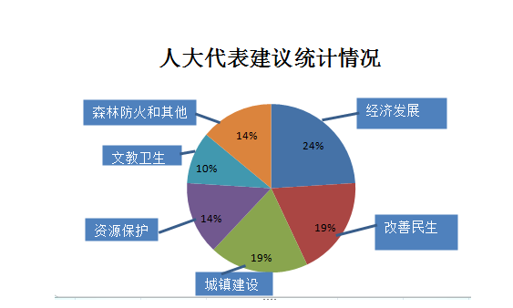 (五)人大代表建议和政协委员提案办理结果情况。区十二届人大二次会议以来,区政府整理归纳人大代表建议共6个方面21件,其中:经济发展方面5件,占24%、改善民生方面4件,占19%、城镇建设方面4件,占19%、资源保护方面3件,占14%、文教卫生方面2件,占10%、森林防火和其他方面3件,占14%,办结率100%。区政协九届二次会议期间,经大会提案审查委员会审查并转交区政府办理的委员提案共55件。委员提案已经落实到位的53件,集中在城区建设、旅游发展、森防建设等方面,办结率96%。