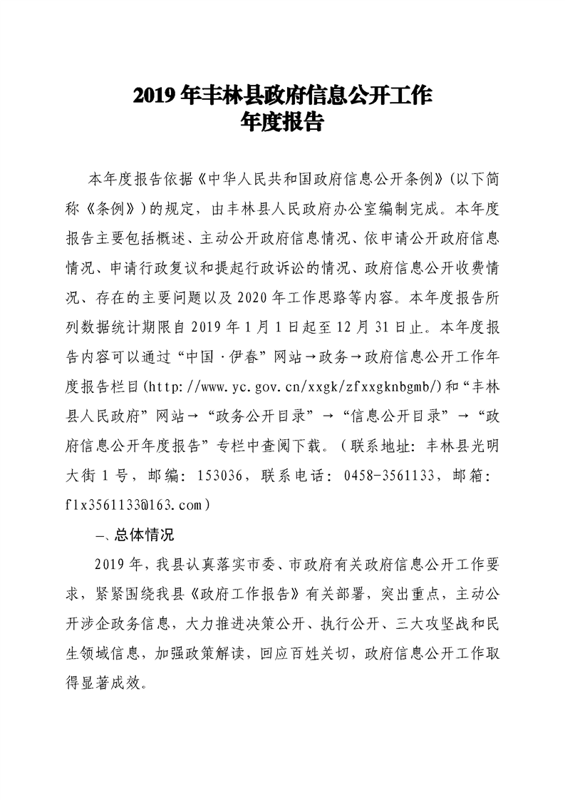 2019年丰林县政府信息公开工作年度报告
